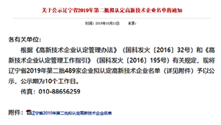 我公司進(jìn)入遼寧省第二批擬認(rèn)定高新技術(shù)企業(yè)名單 |
